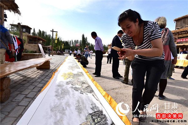 19日上午,在首屆絲綢之路(敦煌)國際文化博覽會召開之際,由敦煌正覺寫經院打造的篆刻《道德經》百米長卷在敦煌月牙泉小鎮(zhèn)亮相,“獻禮”文博會。