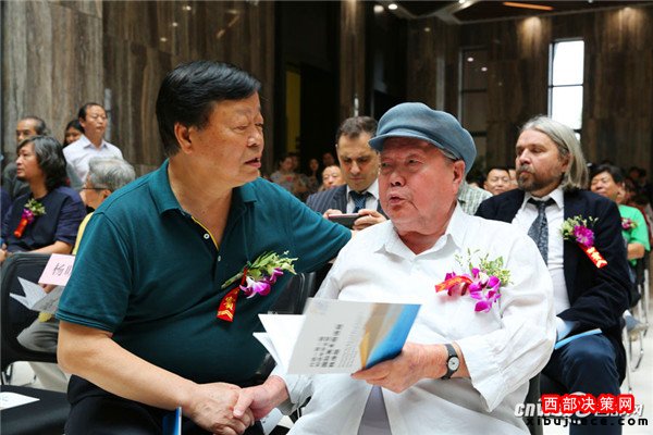 參加開(kāi)幕式的著名老藝術(shù)家劉文西(圖右)和王西京親切交談。