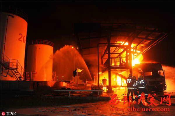 據(jù)了解,事故發(fā)生油罐區(qū)占地約40畝,主要生產(chǎn)航空汽油,油罐區(qū)共有油罐10個,油罐內(nèi)裝有原料及航空汽油約300余噸,發(fā)油平臺往罐車內(nèi)輸送航空汽油時突然發(fā)生火災(zāi),燒毀發(fā)油平臺及油罐車等,著火油罐車儲量30噸,著火時車內(nèi)汽油約10噸,過濾器中有油約7噸,共計約17噸燃油,離鄰近儲油罐約30米。