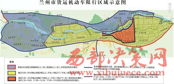 二:主要是針對3至8噸的中型貨車,將限行區(qū)域向西從原來的七里河大橋延伸到了深溝橋和深安大橋,并將限行時間從7至23時擴大為7至24時。 通告規(guī)定:對于核載3噸以上(不含)8噸以下(不含)的貨運機動車,每日7:00—24:00禁止在東崗立交橋以西,南環(huán)路(東崗立交橋—范家坪)以北,深溝橋、深安大橋、深安路、桃林路(深安路—安寧西路)以東,安寧西路、安寧東路、北濱河中路(七里河黃河大橋—市二院)、靖遠路、鹽場路、雁灘黃河大橋、南濱河東路(雁灘黃河大橋—雁峽路)以南區(qū)域內(nèi)道路通行(含上述道路、橋梁,南環(huán)路、深安大橋除外)。