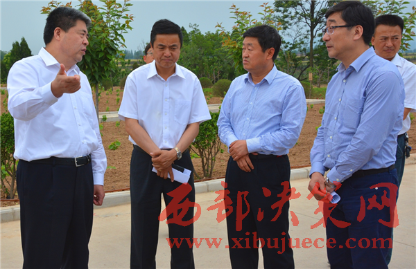 縣委書記何玲縣長張新科在搭載式扶貧試點企業(yè)千陽縣海升蘋果給檢查的上級領(lǐng)導匯報工作.