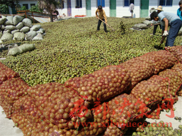 千陽縣干雜果專業(yè)合作社社員在晾曬核桃鮮果