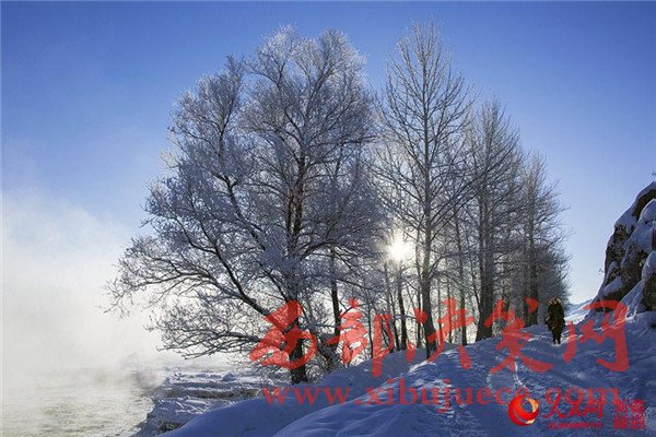 冬日的新疆布爾津是潔白的冰雪世界,銀裝素裹,玉樹(shù)瓊枝,小城披上了晶瑩潔凈的白紗。霧凇晶瑩剔透,蔚為奇觀,如此夢(mèng)幻世界,讓人流連忘返。“霧凇小鎮(zhèn)”沖乎爾,因霧凇壯觀奇特而聞名,每年都有國(guó)內(nèi)外攝影家和旅游愛(ài)好者不遠(yuǎn)千里為賞霧凇而來(lái)。每到冬季氣溫下降,沖乎爾盆地銀裝素裹,布爾津河谷煙籠寒水。河谷兩岸都掛滿(mǎn)了霧凇,滿(mǎn)山遍野的霧凇如禮花般綻放,雪的白色似乎掩蓋不住它們即將綻放的色彩,棵棵白樺宛若玉枝垂掛,簇簇松針恰似銀菊怒放,晶瑩多姿。
