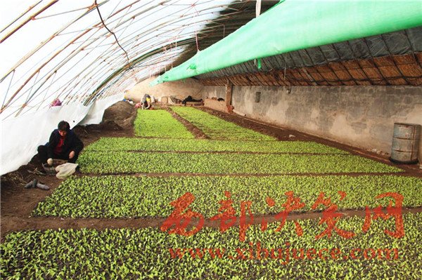 在王磊家的大棚內(nèi),滿眼的綠色郁郁蔥蔥,棚內(nèi)大約培育了十萬余株蔬菜幼苗,有萵筍、蓮花白,棚里光線充足,空氣濕潤(rùn),室內(nèi)溫度高達(dá)零上26攝氏度,為菜苗提供了良好的生長(zhǎng)條件。隨處可見農(nóng)民忙碌的身影,有的在移苗,有的在為營養(yǎng)袋裝土,有的在裝穴盤,動(dòng)作嫻熟、井井有條。
