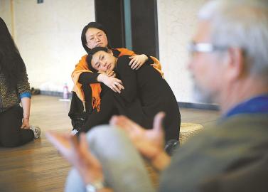 分享會(huì)上,兩名女學(xué)員依偎在一起,相互撫慰著對(duì)方。