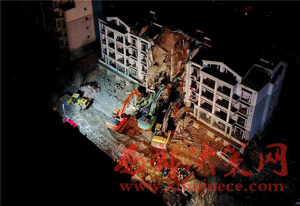 這是航拍的包頭市北只圖村向陽(yáng)小區(qū)爆炸事故救援現(xiàn)場(chǎng)(3月25日攝)