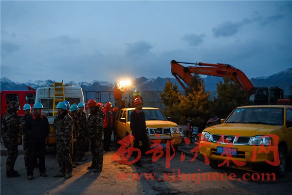 3月25日晚,救援人員在包頭市北只圖村向陽(yáng)小區(qū)爆炸事故現(xiàn)場(chǎng)附近待命