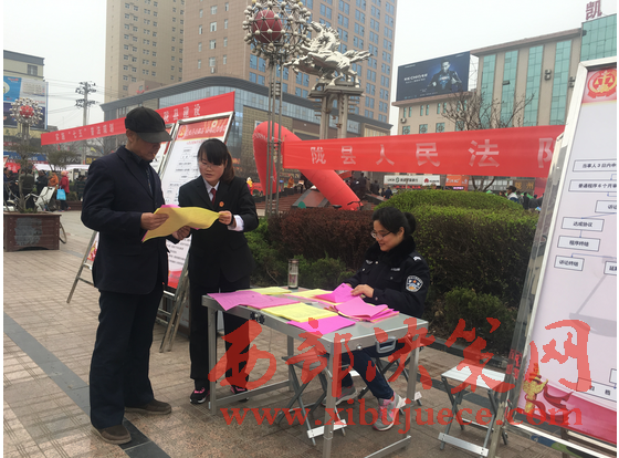 西部決策網(wǎng)-西部大開發(fā)(帥華鋒 杜杰 通訊員 張蕾)4月6日上午,隴縣第二十三個(gè)法治宣傳月啟動(dòng)儀式在隴州廣場(chǎng)舉行,隴縣法院組織干警參與了當(dāng)日的普法宣傳活動(dòng)。