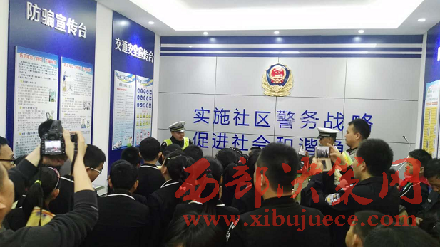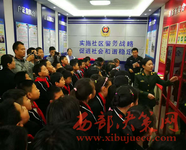 西部決策網(wǎng)-西部大開發(fā)訊(帥華鋒 劉恒)4月19日上午,寶雞市金臺(tái)區(qū)石油小學(xué)5年級(jí)學(xué)生在老師的帶領(lǐng)下參觀了東風(fēng)路派出所陳倉園社區(qū)警務(wù)室。來自金臺(tái)交警大隊(duì)、金臺(tái)消防大隊(duì)和東風(fēng)路派出所民警現(xiàn)場(chǎng)用生動(dòng)活潑的語言給小學(xué)生們上了一堂社會(huì)實(shí)踐課。