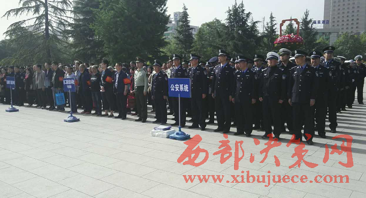 西部決策網(wǎng)-西部大開發(fā)訊(帥華鋒 杜杰)5月6日上午,渭濱區(qū)在炎帝園廣場隆重舉行打造“經(jīng)二路平安示范一條街” 夏季攻堅行動推進(jìn)會,市委政法委及區(qū)委、區(qū)人大、區(qū)政府、區(qū)政協(xié)相關(guān)領(lǐng)導(dǎo)出席現(xiàn)場,公安、執(zhí)法、區(qū)級部門、平安單位、社區(qū)志愿者組成五個方陣共300余人參加會議。