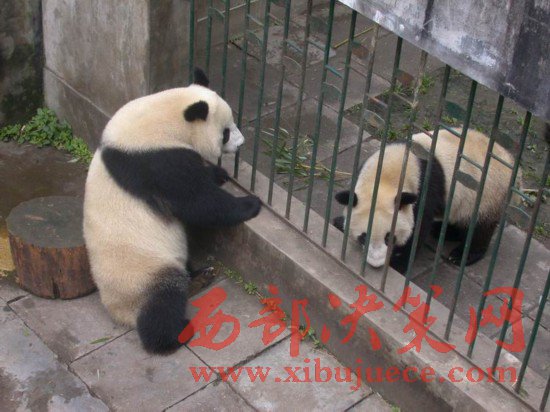 熊貓情侶在發(fā)情季節(jié)隔著欄桿培養(yǎng)感情