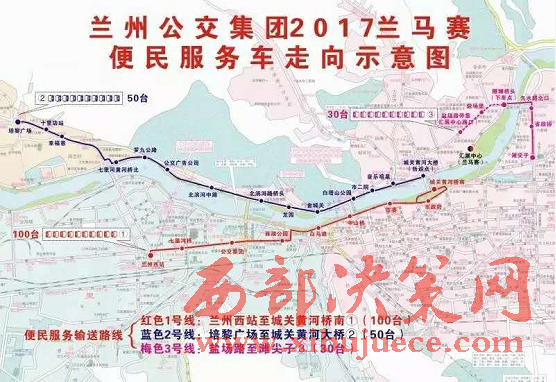 1號(hào)接送專線:賽事當(dāng)天早4:40時(shí)開始至6:30結(jié)束(路橋封閉之前),1號(hào)線車輛由蘭州西站1路站始發(fā),不間斷開往城關(guān)黃河橋南,途經(jīng):七里河橋、公交集團(tuán)、西湖公園、白馬浪、中山橋、市委、市政府、城關(guān)黃河橋南站點(diǎn)(折返),該線路配車100臺(tái)。