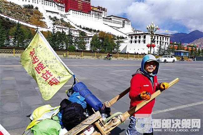 經(jīng)過(guò)119天的漫長(zhǎng)跋涉,從短袖到棉衣,從酷暑到嚴(yán)寒,他用腳板丈量路程。當(dāng)他站在雄偉的布達(dá)拉宮前,瞬間感覺到“自己的人生完滿了”。