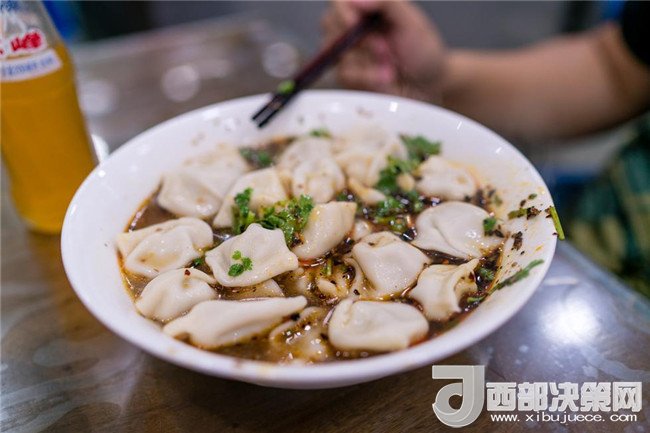 馬二酸湯水餃:特有的香料味兒,混合著有湯汁兒的牛肉餡,美美的。再喝口熱湯,香菜、辣椒、芝麻配起來特別的提味。味道重,口味酸,適合老陜。