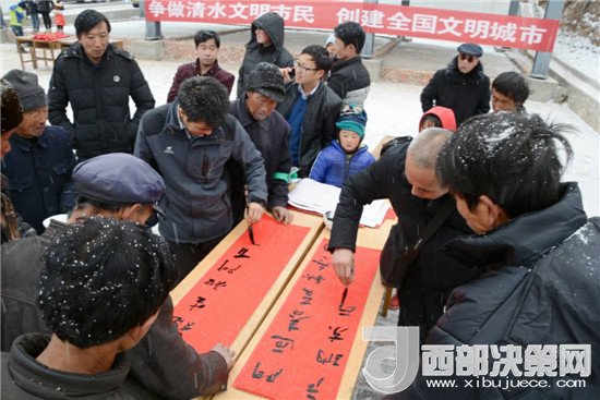 在活動現(xiàn)場,秦腔《花亭相會》、《鍘美案》、《拾黃金》、《三娘教子》、《蘇武牧羊》、《十五貫》等精彩節(jié)目輪番上演,吸引了眾多群眾前來觀看;縣委宣傳部、黨校宣傳了黨的十九大精神;文明辦、創(chuàng)建辦宣傳了全國文明城市創(chuàng)建知識,現(xiàn)場發(fā)放全國文明城市創(chuàng)建宣傳品,組織志愿者開展志愿服務活動;文聯(lián)縣醫(yī)院、中醫(yī)院、司法局、農(nóng)業(yè)局等單位為群眾書寫春聯(lián),免費開展義診,法治教育、預防青少年違法犯罪等方面進行了宣傳,社會反響好。