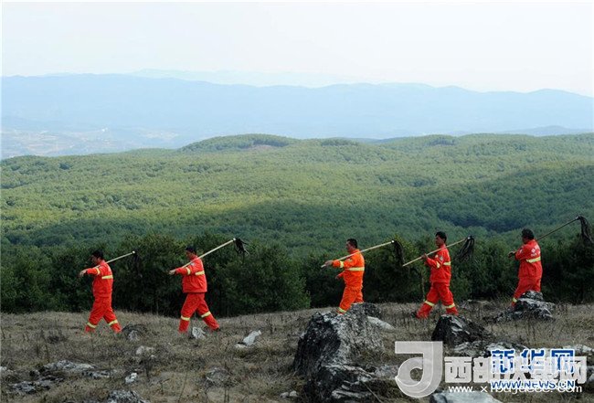 沙子坡林場(chǎng)的護(hù)林員在夕陽(yáng)下巡山歸來(lái)(2013年7月7日攝)。