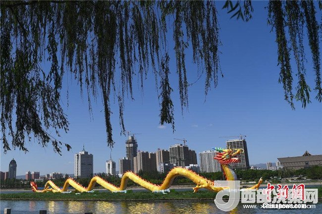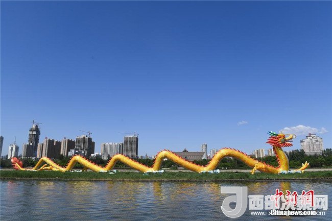 5月2日,山西太原汾河景區(qū)的中國巨龍裝飾一新。這條名為“中華第一巨龍”的景觀燈組長126米,龍頭高16米,共計(jì)使用防雨綢布約3000平方米。中新社記者武俊杰攝