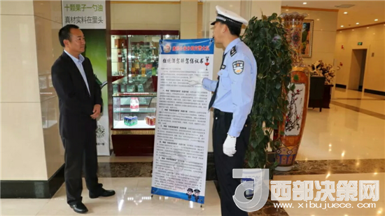 西部決策網(wǎng)——西部大開發(fā)訊(帥華鋒 通訊員 馬存福 漆小燕)酒后駕車害人深,酒前宣傳可預(yù)防。為進一步倡導(dǎo)文明、安全行車,培養(yǎng)駕駛?cè)肆己玫鸟{駛習(xí)慣,最大限度的預(yù)防和減少酒后駕駛交通違法行為,營造“拒絕酒后駕駛”濃厚的宣傳氛圍。近日,甘肅天水公安交警部門結(jié)合全省正在開展的“三反一查”綜合治理以及“七個一律”工作安排,在轄區(qū)酒店、賓館投放“拒絕酒駕”宣傳立式海報、溫馨提示卡,將酒駕的危害、法律法規(guī)宣傳前移到了就餐前,讓市民在餐桌上筑起一道法律安全防線。