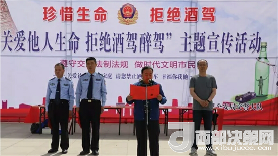 西部決策網(wǎng)——西部大開發(fā)訊(帥華鋒 通訊員 馬存福 蘇娟)認真貫徹落實全省春運總結(jié)暨春夏反超速反疲勞反酒駕綜合治理視頻會議精神,縱深推進全縣“三反一查”及酒駕宣傳教育活動。5月29日,甘肅西和縣公安局交警大隊在城區(qū)避難廣場隆重舉行“關(guān)愛他人生命 拒絕酒駕毒駕”主題宣傳活動,進一步弘揚交通安全法治精神,普及交通安全風(fēng)險防范知識,倡導(dǎo)通行規(guī)則、守法自律、社會責(zé)任、文明交通和公眾道德意識,倡導(dǎo)全民抵制酒駕醉駕違法犯罪行為,形成人人抵制交通違法、人人踐行文明交通、全社會共建共享文明交通的良好風(fēng)尚。西和縣縣委常委、政法委書記嚴倉一出席活動并講話,交警、運管、亨通、萬通、隴運西和分公司的負責(zé)人及駕駛?cè)舜?,福安、祥豐駕校學(xué)員代表共計200余人參加了活動。