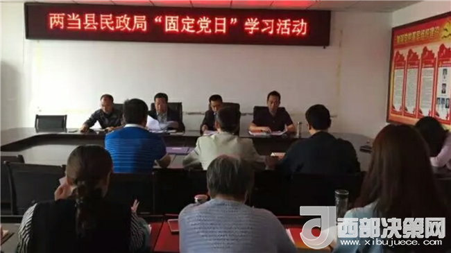 西部決策網(wǎng)——西部大開發(fā)訊 (帥華鋒 通訊員 馬存福 趙雪瓊)5月29日上午,甘肅兩當(dāng)縣民政局在三樓會議室開展“固定黨日”學(xué)習(xí)活動,全體黨員職工參加。民政局長、黨支部書記田春參加并主持學(xué)習(xí)活動。