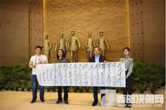 西部決策網(wǎng)—西部大開(kāi)發(fā)訊(帥華鋒 通訊員 陳彥榮 齊彩云)在這綠意盎然、鳥(niǎo)語(yǔ)花香的美好時(shí)節(jié),“紅色南梁”迎來(lái)了中國(guó)“毛體”書(shū)法家協(xié)會(huì)會(huì)員、中國(guó)硬筆書(shū)法協(xié)會(huì)會(huì)員、中國(guó)書(shū)畫(huà)家協(xié)會(huì)會(huì)員、金陵書(shū)畫(huà)院理事、江西廬山毛主席書(shū)法研究院高級(jí)研究員、中國(guó)毛澤東詩(shī)詞研究會(huì)會(huì)員、韶山毛澤東書(shū)法藝術(shù)研究會(huì)會(huì)員王洪濤老師,他帶著對(duì)華池革命老區(qū)的深情厚誼和對(duì)劉志丹、謝子長(zhǎng)、習(xí)仲勛等陜甘邊革命先輩舍生忘死、救民出水火的崇敬之意,長(zhǎng)途跋涉一路輾轉(zhuǎn),向南梁革命紀(jì)念館捐贈(zèng)毛主席詩(shī)詞書(shū)法作品。