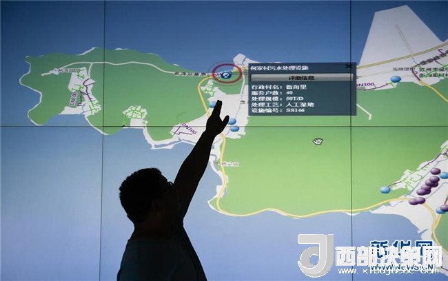 7月4日,蘇州市吳中區(qū)金庭鎮(zhèn)污水處理廠(chǎng)工作人員展示有實(shí)時(shí)監(jiān)控監(jiān)測(cè)、在線(xiàn)巡檢等功能的農(nóng)村獨(dú)立處理設(shè)施信息化管理平臺(tái)。新華社記者李響攝