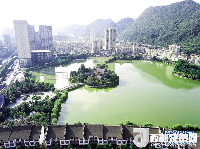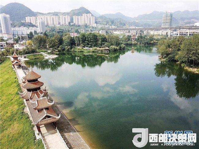六盤(pán)水市水城縣鳳池公園風(fēng)景(2017年8月23日無(wú)人機(jī)拍攝)。