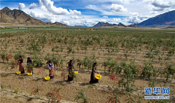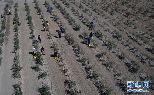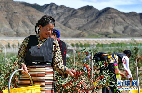 近日,西藏白朗縣萬(wàn)畝枸杞生態(tài)觀光產(chǎn)業(yè)園進(jìn)入采摘期。兩年多來(lái),經(jīng)過(guò)當(dāng)?shù)卣推髽I(yè)的共同努力,將原有的沙荒地進(jìn)行改造,成功栽培7000余畝枸杞目前已果實(shí)累累。 新華社記者 張汝鋒 攝