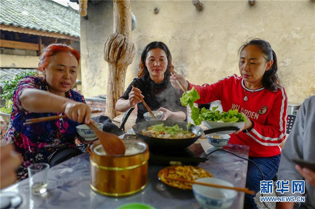 9月19日,游客在花田鄉(xiāng)何家?guī)r村的農(nóng)家樂(lè)里品嘗花田貢米和土家美食。記者劉潺攝