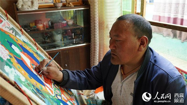 在薩迦縣城寶鋼中路上,民族手工業(yè)合作社店鋪里,45歲的邊巴正在小心擺弄著墻上的唐卡。邊巴說:“咱們薩迦民族手工業(yè)歷史悠久,比如薩迦唐卡和銀器都有千年歷史,泥塑面具也有900多年歷史,希望通過合作社形式讓手工業(yè)能規(guī)?;?jīng)營,解決一些貧困戶就業(yè)。”(記者鄧建勝 瓊達(dá)卓嘎 )