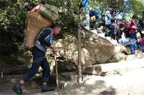 有游客好奇問(wèn)挑山工:你都年紀(jì)不小了,找點(diǎn)輕松活干唄!把自己整這么辛苦,值得嗎?
