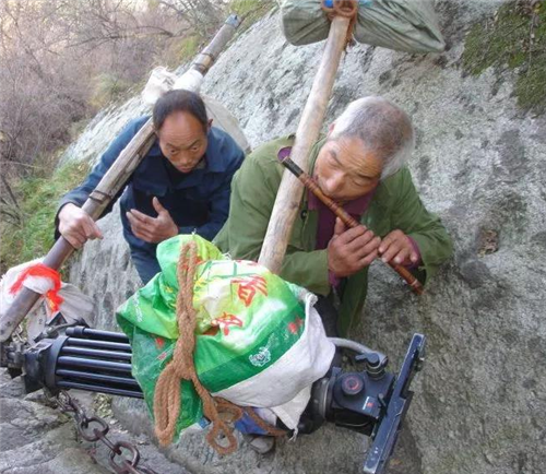 可是,有一群人,每天背著幾十斤重的貨物在華山上下,如履平地,數(shù)十年如一日,這就是華山上的別樣風(fēng)景---挑山工。