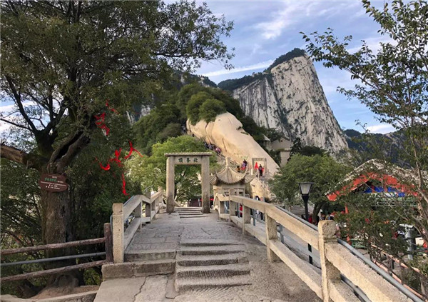站在老君犁溝的盡頭,看著緩緩攀登的游人。站在華山的石階上,迎著涼涼的秋風(fēng)。輕踩著一級又一級的臺階,走在狹窄悠長的山道上,偶遇最美好的秋日。