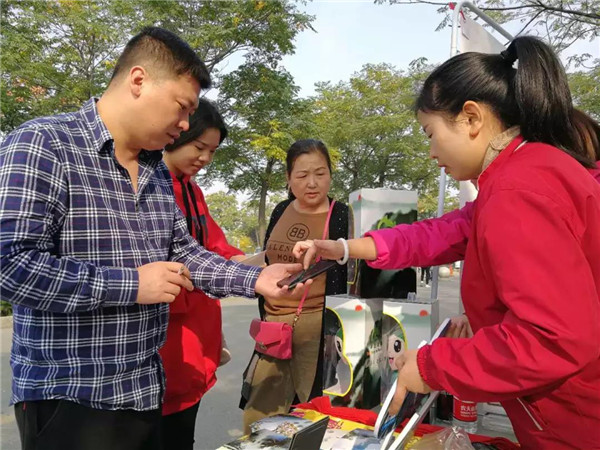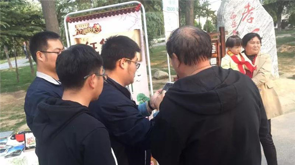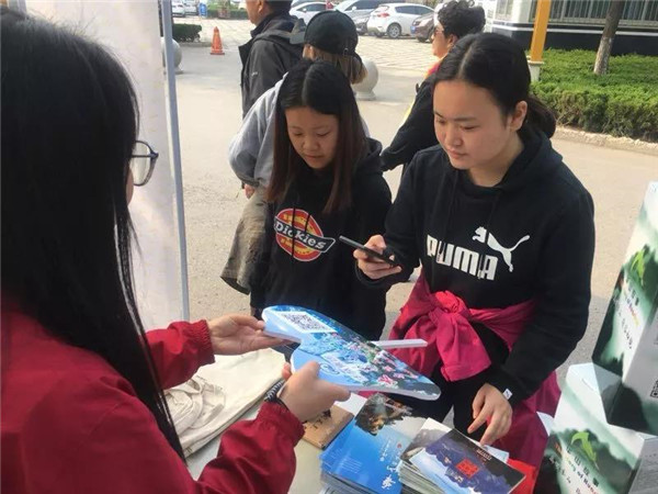 今天一大早孝心石周圍就圍滿了前來咨詢的登山游客。營銷中心的工作人員正在耐心地為游客講解,并指導游客參與活動。