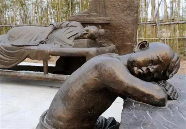 庾黔婁,南齊高士,任孱陵縣令。赴任不滿十天,忽覺心驚汗流,預感家中有事,當即辭官返鄉(xiāng)?;氐郊抑?,知父親已病重兩日。醫(yī)生囑咐說:“要知道病情吉兇,只要嘗一嘗病人糞便的味道,味苦就好。” 黔婁于是就去嘗父親的糞便,發(fā)現(xiàn)味甜,內(nèi)心十分憂慮,夜里跪拜北斗星,乞求以身代父去死。幾天后父親死去,黔婁安葬了父親,并守制三年。