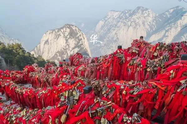 來華山,定要登上南峰極頂,掛上屬于你們的同心鎖、平安帶,走一走傳說中的長空棧道和鷂子翻身、在神秘的仰天池畔(又名許愿池)許下美好的愿望。