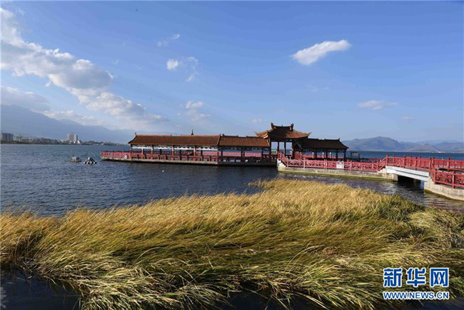 11月8日拍攝的大理洱海興盛大橋。 初冬時節(jié),云南大理洱海湖水清澈,景色秀麗迷人。 新華社記者楊宗友攝