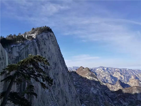 初冬的華山,微風(fēng)中夾雜著絲絲寒意,淡淡的煙云在山間飛舞著、彌漫著,一切都變的清晰、明朗,仿佛整座山脈也變得熱鬧起來。
