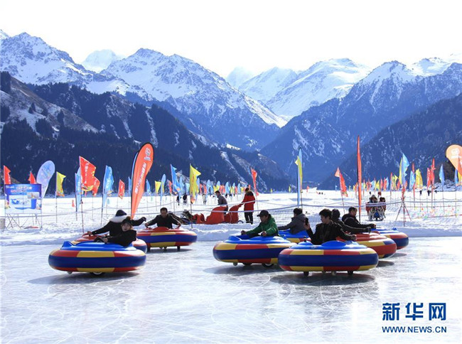 游客在天山天池景區(qū)體驗(yàn)冰上娛樂項(xiàng)目(2月6日攝)。各地張燈結(jié)彩,處處歡聲笑語(yǔ),地處中國(guó)西北邊陲的新疆各族群眾,新春佳節(jié)期間,耍社火、逛廟會(huì)、看演出、玩冰雪,載歌載舞,在濃濃的中華傳統(tǒng)文化氛圍中熱熱鬧鬧過大年。新華社發(fā)(甄梅攝)