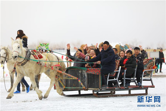 游客在南疆巴音郭楞蒙古自治州境內(nèi)的博斯騰湖冰面上體驗(yàn)馬拉爬犁(2月6日攝)。各地張燈結(jié)彩,處處歡聲笑語(yǔ),地處中國(guó)西北邊陲的新疆各族群眾,新春佳節(jié)期間,耍社火、逛廟會(huì)、看演出、玩冰雪,載歌載舞,在濃濃的中華傳統(tǒng)文化氛圍中熱熱鬧鬧過大年。新華社發(fā)(年磊攝)