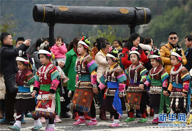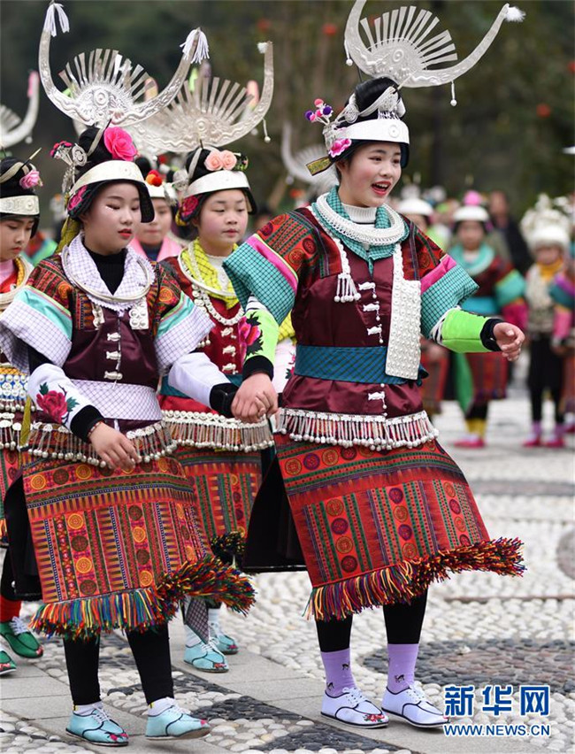 3月16日,在丹寨縣南皋鄉(xiāng)清江村,苗族姑娘在前往參加翻鼓節(jié)活動途中。 當(dāng)日,貴州省黔東南苗族侗族自治州丹寨縣南皋鄉(xiāng)清江村清江村舉行翻鼓節(jié)。翻鼓節(jié)是當(dāng)?shù)孛缱宕迕裼哟焊絹淼拿袼坠?jié)日,至今已有近600年歷史,每年農(nóng)歷二月舉行。 新華社記者 楊文斌 攝