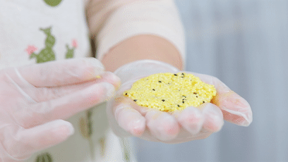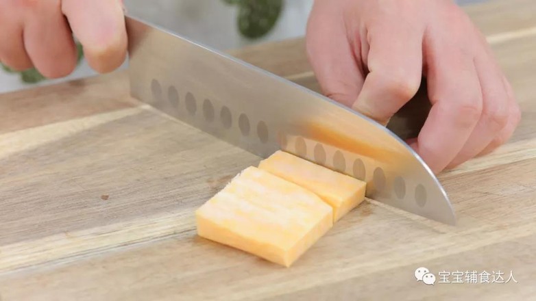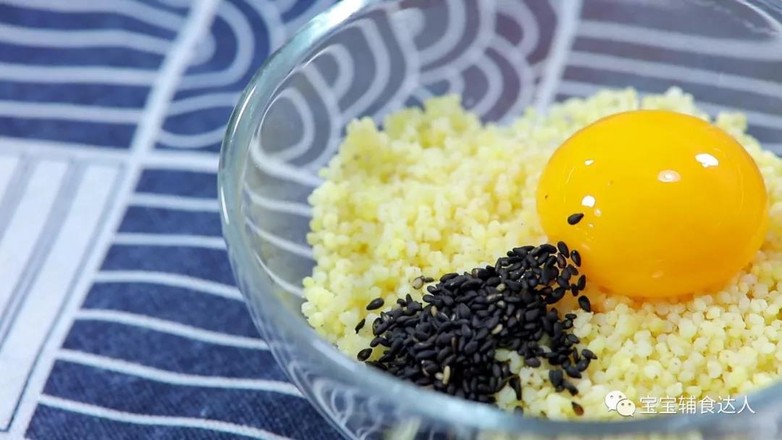 食材準(zhǔn)備:小米飯70克、紅薯50克、黑芝麻2克、蛋黃1個