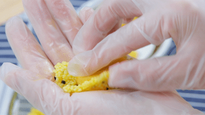 *餅的大小要根據(jù)紅薯條的長度來,保證能把紅薯條完全包裹住就行嘍。