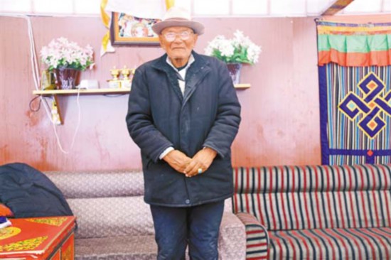圖為精神矍鑠的次仁羅布老人。記者 張斌 扎西頓珠 攝