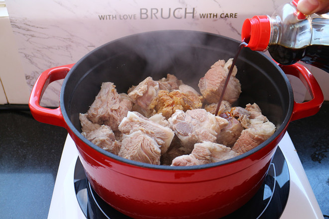 6.倒入少量的料酒去腥,加入適量的醬油調(diào)色。