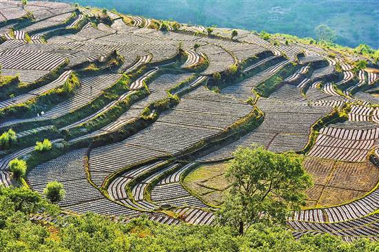 近日,南澗彝族自治縣南澗鎮(zhèn)白云村的烤煙大田移栽基本完成,一片片梯田構(gòu)成了一幅美麗的畫卷。南澗縣今年將進(jìn)一步加大科技種植、科技管理力度,力爭實(shí)現(xiàn)烤煙生產(chǎn)提質(zhì)增效。本報(bào)通訊員 適志宏 攝