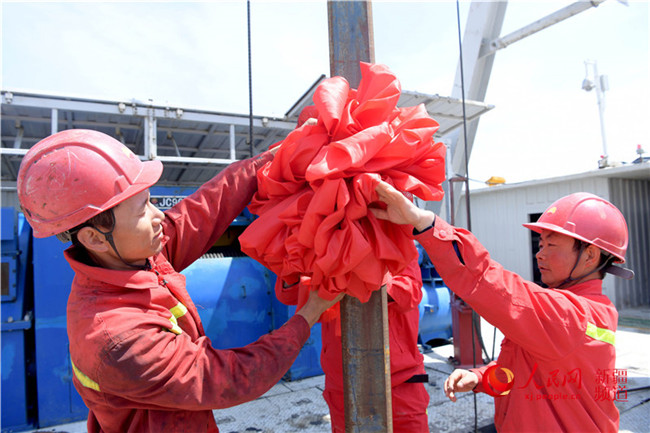 5月14日,準(zhǔn)東鉆井公司90001鉆井隊(duì)技術(shù)員正在檢查鉆頭。當(dāng)天,由中國(guó)石油西部鉆探準(zhǔn)東鉆井公司承鉆的集團(tuán)公司重點(diǎn)風(fēng)險(xiǎn)井呼探1井,在新疆呼圖壁縣境內(nèi)鳴笛開鉆,標(biāo)志著新疆準(zhǔn)噶爾盆地南緣東段深層勘探工作正式拉開序幕。