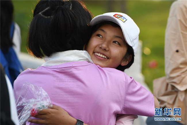 6月9日,合肥市第三十五中學(xué)西藏班的初三畢業(yè)生(左)在離別前與校友擁抱。