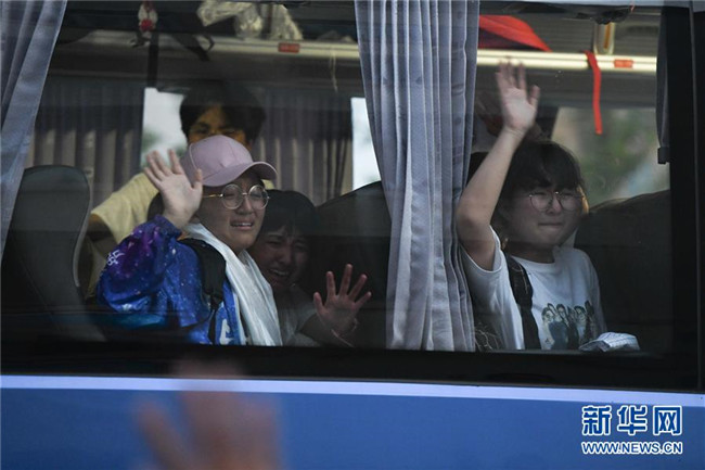 6月9日,合肥市第三十五中學(xué)西藏班的初三畢業(yè)生乘坐大巴離開校園。