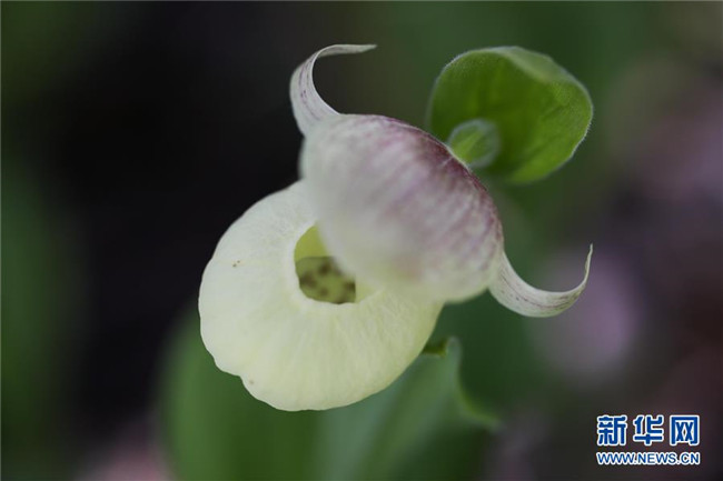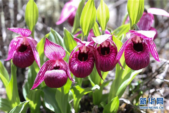 這是在四川黃龍自然保護區(qū)黃龍溝拍攝的西藏杓蘭(6月12日攝)。 新華社記者江宏景攝